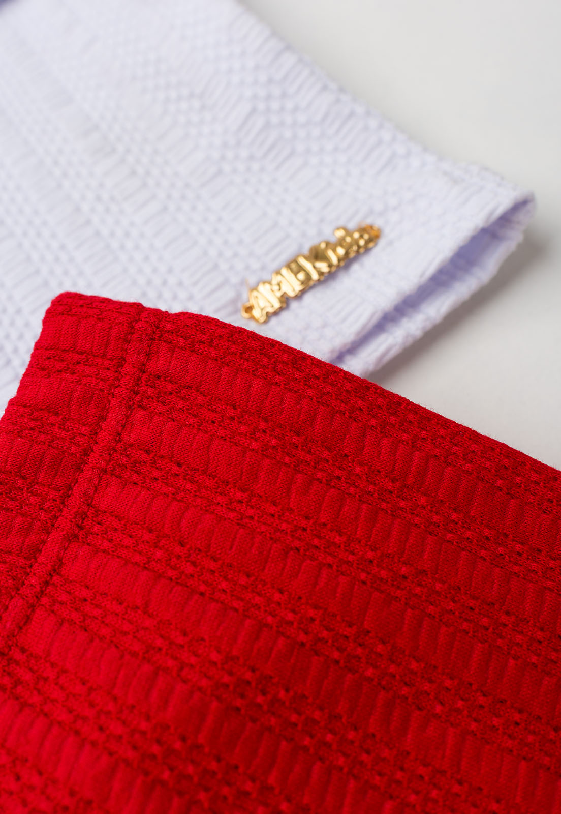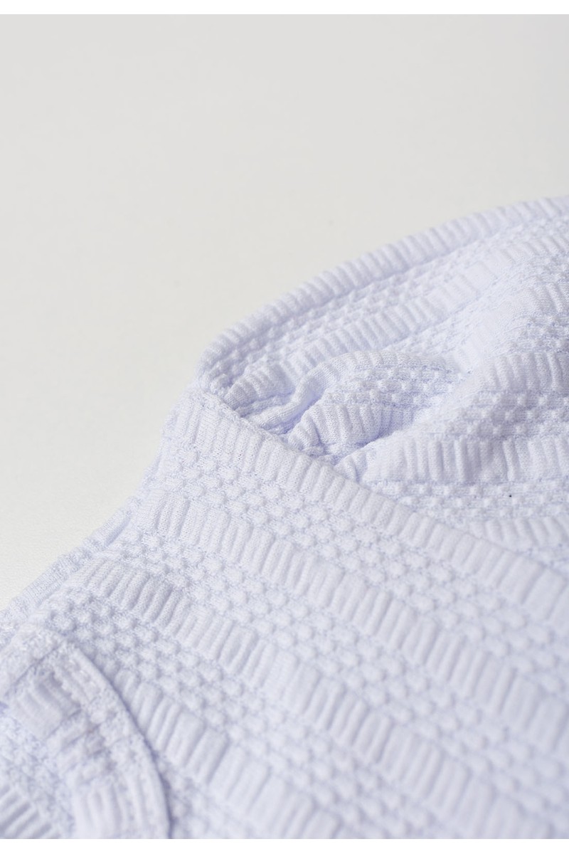 Este conjunto combina a blusa em tom claro com textura do tecido sunset, que traz um visual sofisticado e delicado.