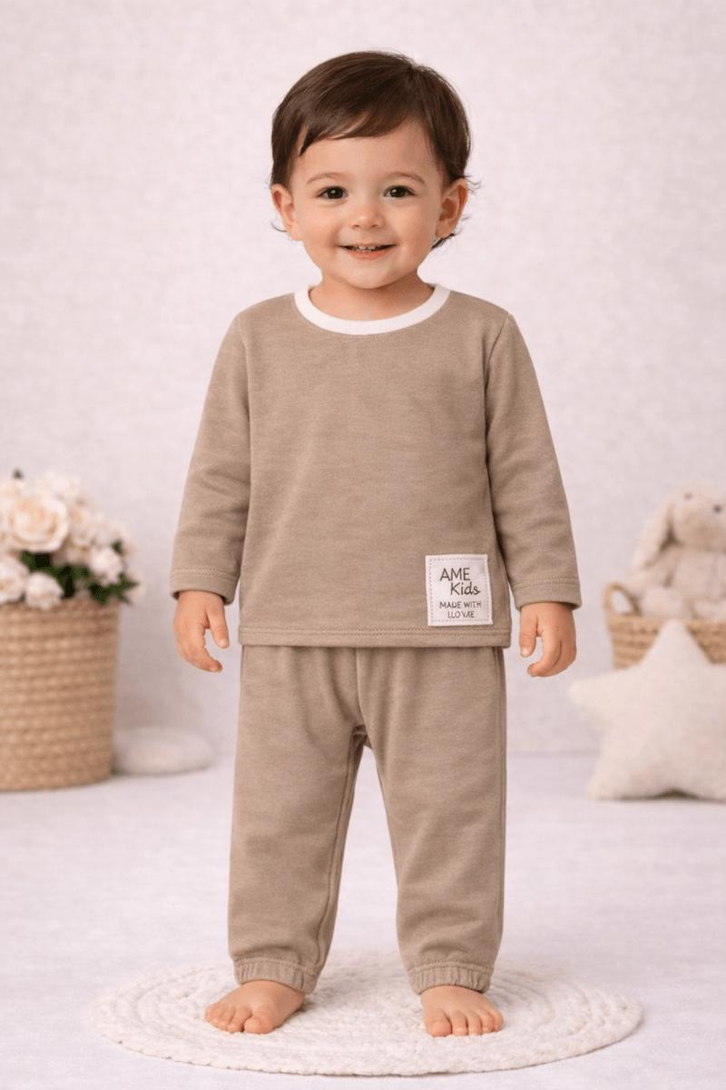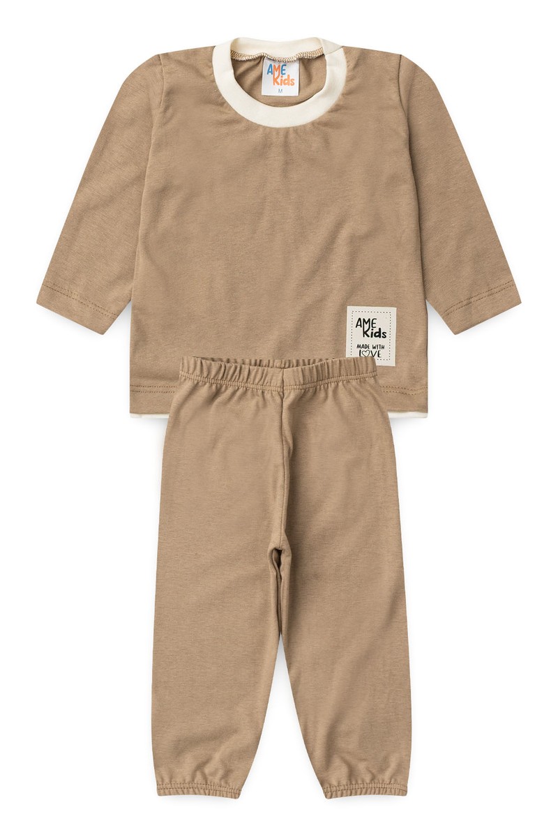 Conjunto Blusa Manga Longa e Calça Meia Malha - Areia - Ame Kids