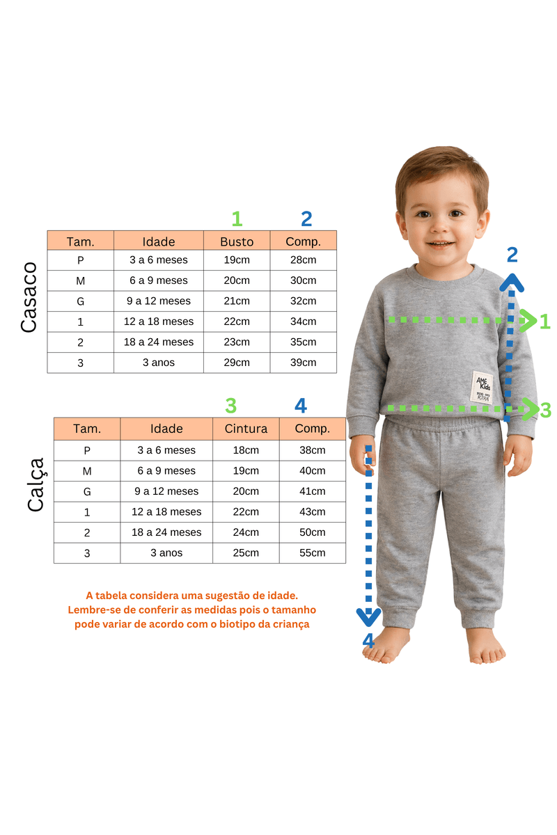 Conjunto Infantil Bebê Blusa Manga Longa e Calça Moletom - Mescla - Ame Kids