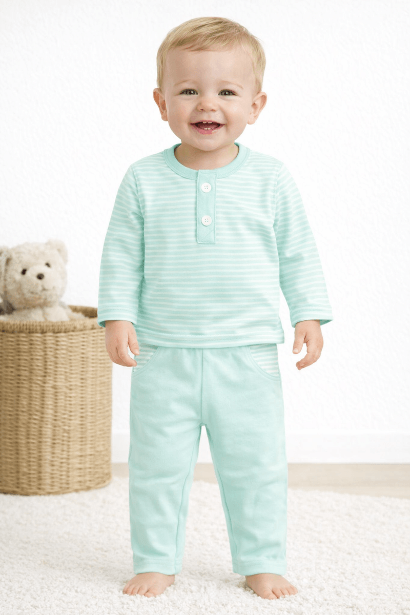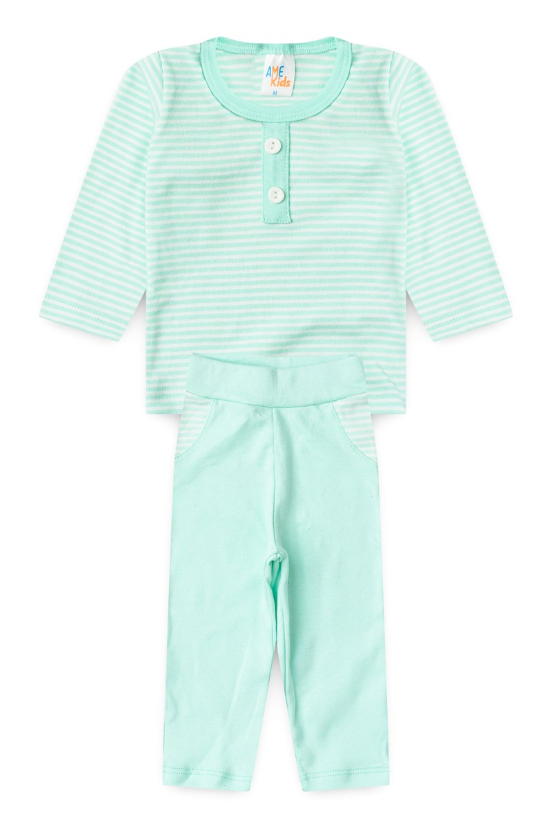 Conjunto de Blusa Listrada e Calça Menino - Verde - Ame Kids