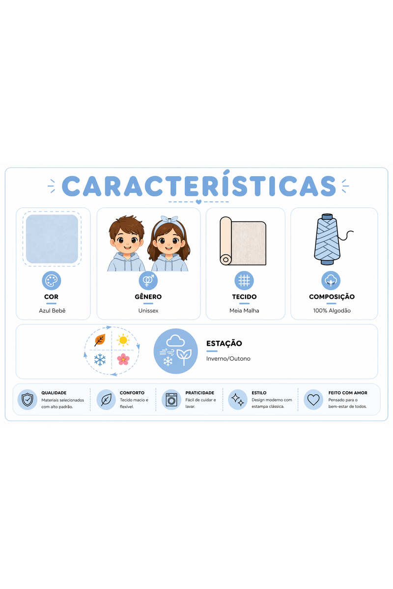 O design traz estampa frontal, proporcionando um visual delicado e divertido. Os punhos da blusa e da calça são ribana garantindo melhor ajuste e praticidade no uso.