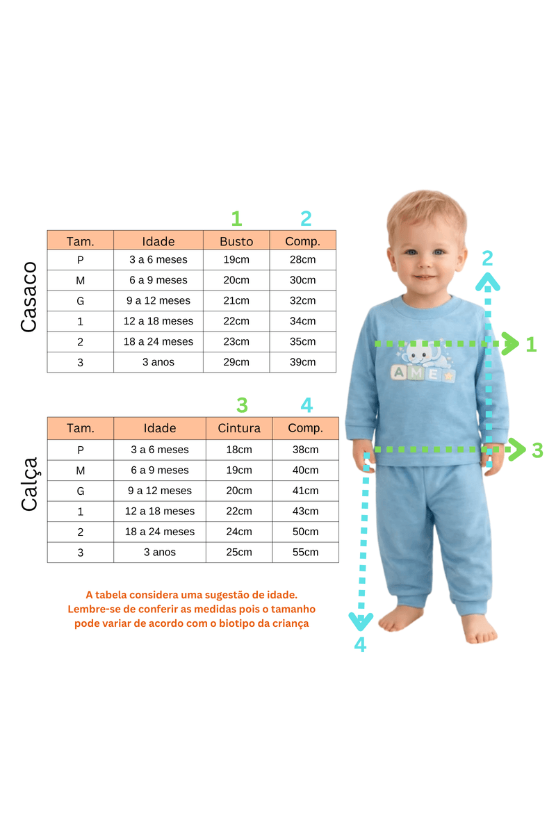 Conjunto Pijama Bebê Meia Estação Blusa e Calça - Elefantinho Azul - Ame Kids