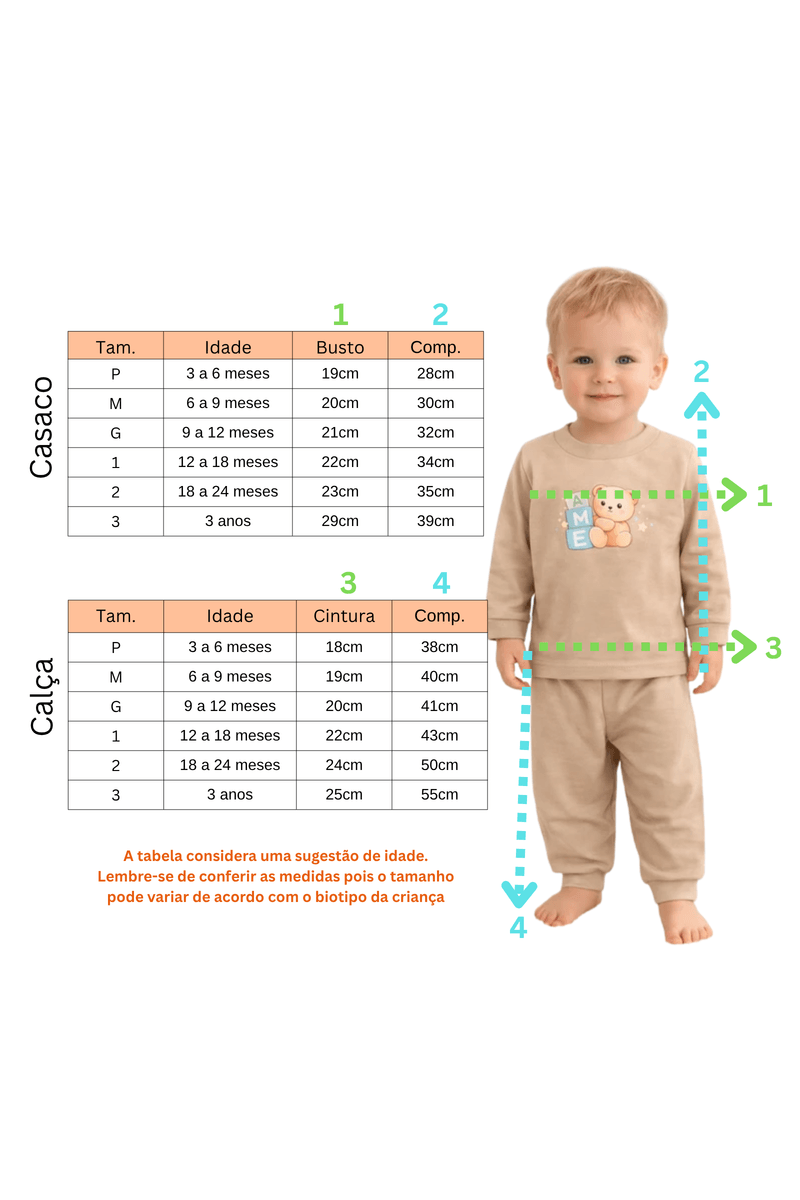 Conjunto Pijama Bebê Meia Estação Blusa e Calça - Ursinho Caqui - Ame Kids
