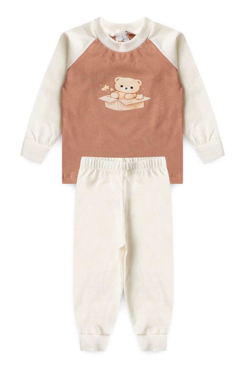 Conjunto Pijama Bebê Meia Estação Blusa e Calça - Ursinho Off-White - Ame Kids